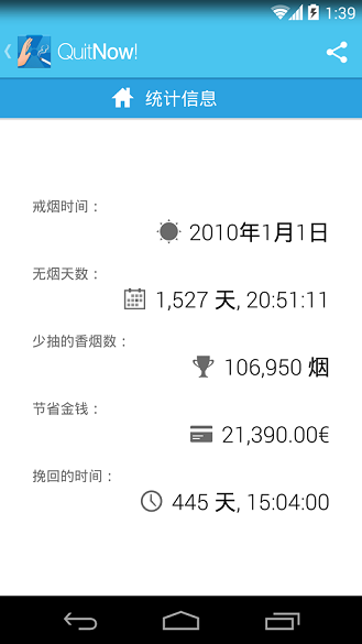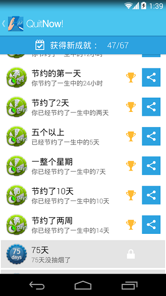 最重要的是,“现在戒烟!”也是一款社交工具:你可以在应用上分享你的状态和成就: