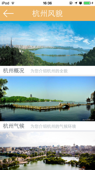 2.为游客提供各类旅游信息服务,如杭州城市介绍,旅游特色,专题旅游介绍,旅游攻略,推荐旅游线路,景点,以及旅游电话咨询投诉,地图位置查看,路线导航等。