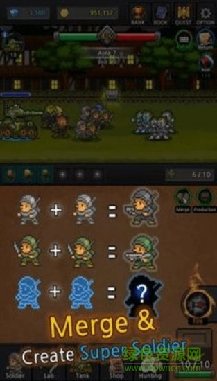糅合了合成、动作以及养成等多种玩法的趣味游戏,玩家可以在通过合成士兵来生产超级士兵,成长士兵手游同时探索各个领域来救援士兵!游戏内容丰富,可玩性十足,值得你探索体验!