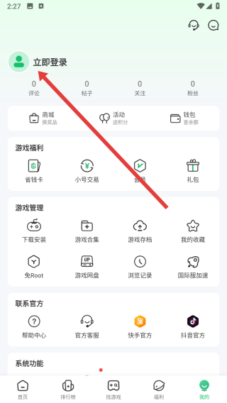 2、个人中心页面点击“免Root”,进入免ROOT页面。
