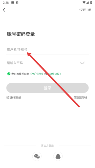 4、在勾选好同意按钮后,可以点击上方输入框依次填写账号和密码后点击登录,即可完成登录操作。