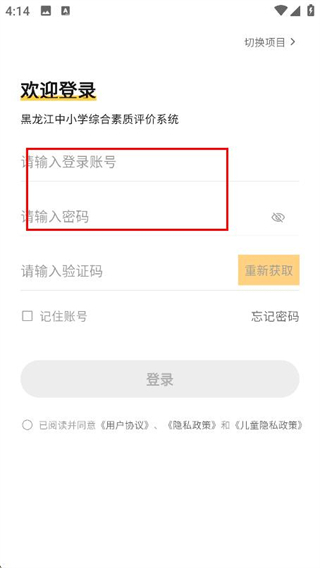 3、在登录页面,点击输入框输入需要账号和对应的密码。