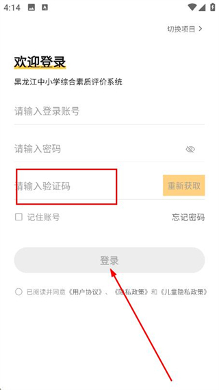 4、输入验证码,点击登录按钮,即可完成综评学生版登录。