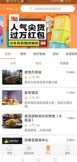 附近店铺,各个种类的店铺信息都可以查找到,并且还能够分类查找线下店铺;