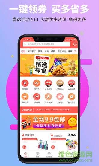 网购达人的省钱工具!整合成千上万的电商商家,每天呈现大量的品类实惠、高折扣的商品,及每天更新海量大额优惠券。可以实现让你每天赚点收益,面膜钱又存好了。