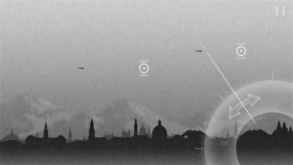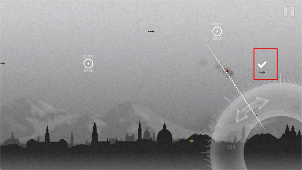 4、确认瞄准方向准确后松开圆形区域,完成射击操作攻击目标飞机。