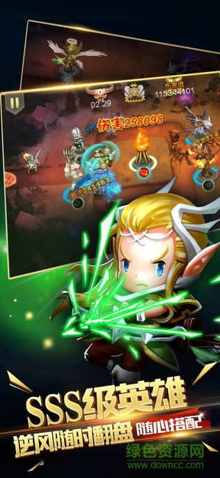 以西方魔幻色彩风格为题材,q版英雄激萌形象降临危机四伏的繁华大陆。祭司、精灵射手、独角兽、弩手、狮鹫、黑龙、十字军、蝎狮……英雄类型各司其职,天赋技能各有所长,找到最佳火力集中区,集攻防于一体,层层进阶,将伤害输出最大化,谱写魔幻史诗!