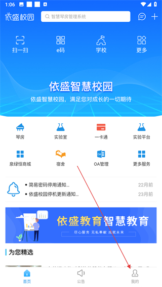 1、打开依盛校园APP,点击我的选项,进入个人页面。