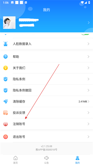 2、进入之后,点击注销账号选项,进入账号注销页面。