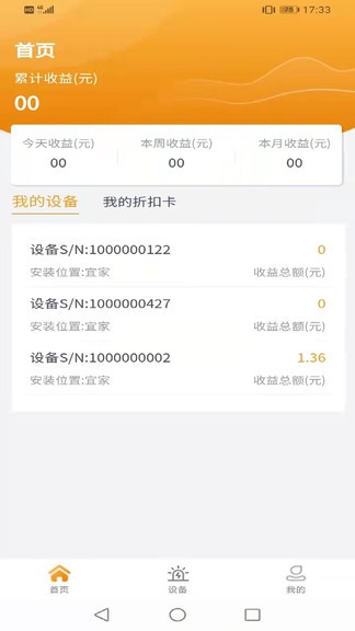 好快满商家版软件支持在手机上绑定设备,可以查看设备的实时状态,支持查看折扣卡和收益情况,当设备遇到异常情况时手机还会收到报警信息,故障早知晓,欢迎感兴趣的朋友下载使用!