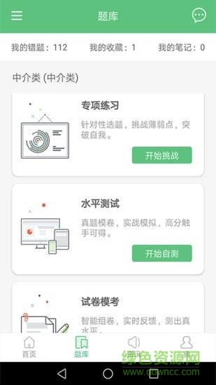 好题帮是专为考试用户准备的题库软件,内涵保险,银行高层管理的考试内容,用户可以根据实际情况来选择自己需要复习的题目,题库会根据最新的考试大纲等内容进行更新,感兴趣的朋友就来绿色资源网下载体验!