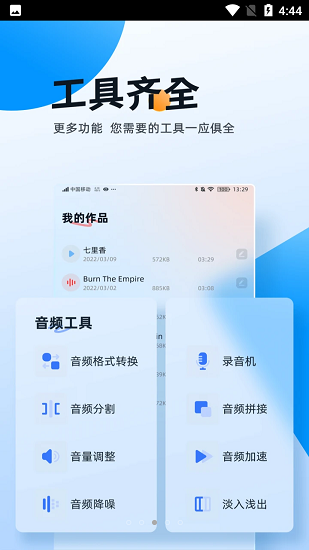 【音频剪辑】精确到毫秒的专业剪辑;从本地音乐库导入音频,自定义剪切范围,对裁剪的音频进行编辑和制作。