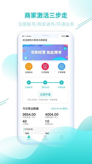 大周易兑官方推出的手机版商家店铺管理平台,快捷了解经营动态,生意一手掌握!