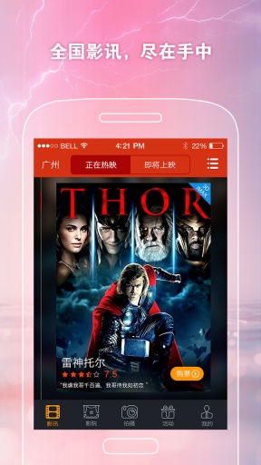 可根据LBS(附近)搜索身边的电影院信息,提供全国多个主要城市,几百家影院团购信息。