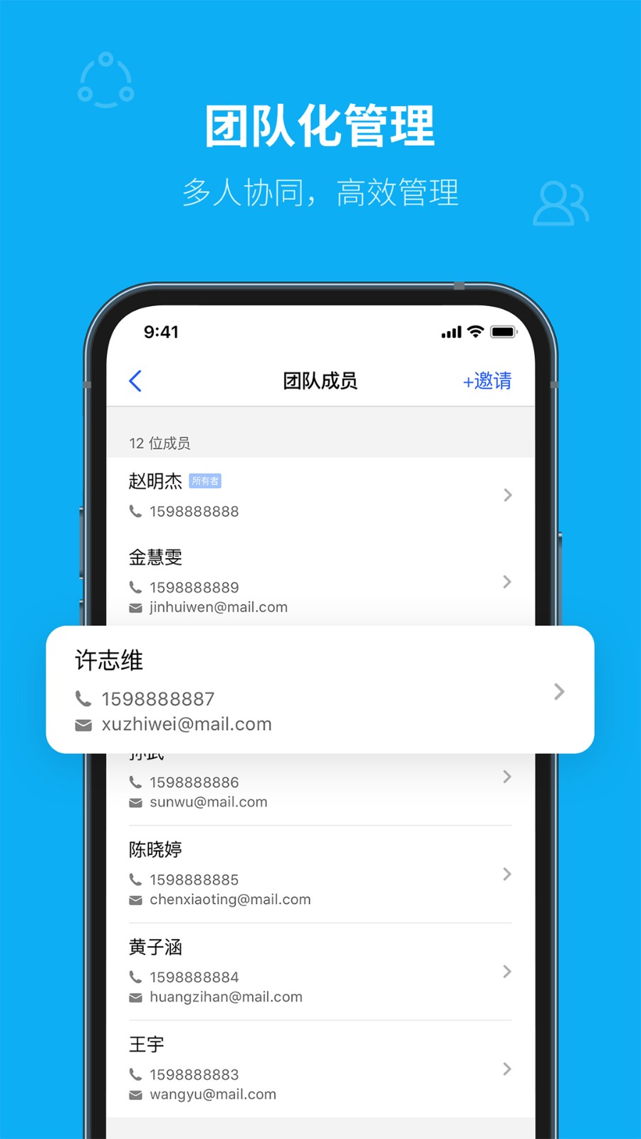 支持多位团队成员共同管理设备、访问数据、接收通知。