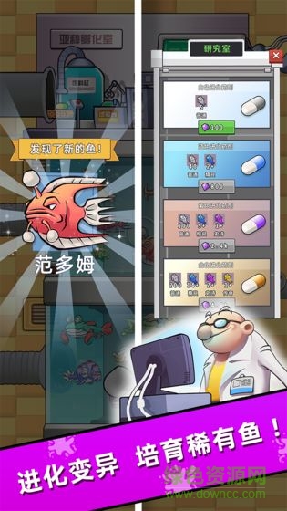 1、进化变异来培育稀有鱼种,实验室升级自由孵化,放置离线也能获得经验。
