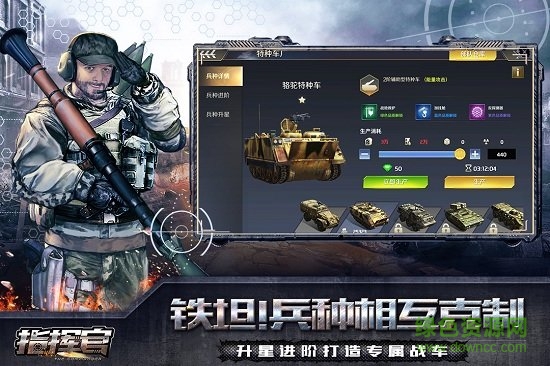 游戏中有坦克、火炮、战车、特种车四大兵种,细节构造完美还原经典载具,极致声光特效将给你带来身临其境的作战体验。兵种属性相互克制,作为指挥官的你铭记收复失地、重建家园的使命,誓要还战区人民和平安宁的土地,就需要在上阵之前仔细观察敌方兵种,利用兵种之间的克制关系合理的选择自己的上阵兵种,知己知彼方能百战不殆,巧妙的布阵技巧,高超的驾驭能力,在这场军事较量中起到至关重要的作用。