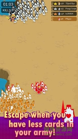 现在,四大牌之间将开始一场大战,只有最好的一场才能获胜。选择你的军队,你想要玩的牌数,并挑战你的朋友!控制你的军队,以打败对方,收集卡片,不要掉进洞里!之后,您最多可以与4位朋友一起玩!