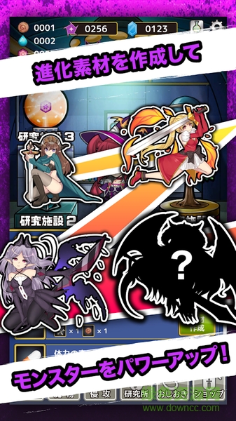 3、收取素材 进行合成 研究 让你的魔王军进化!