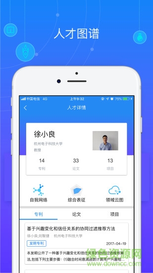 4.智能搜索:科技人才及其专利、论文、项目、成果等信息的智能搜索服务。