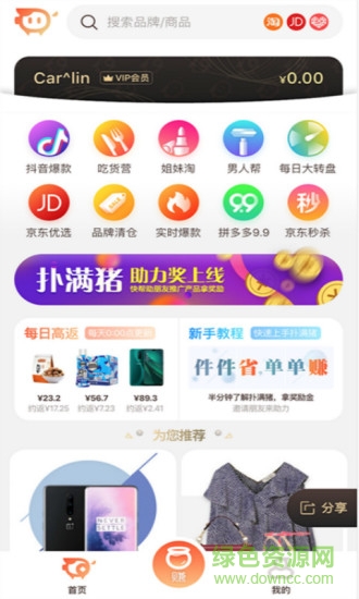 扑满猪安卓手机版是一款非常好用的优惠购物app,这里汇集了丰富的优惠商品资源,购物除了能享受折扣优惠价格外,还能得返利,一省再省,欢迎喜爱的朋友到绿色资源网下载使用!