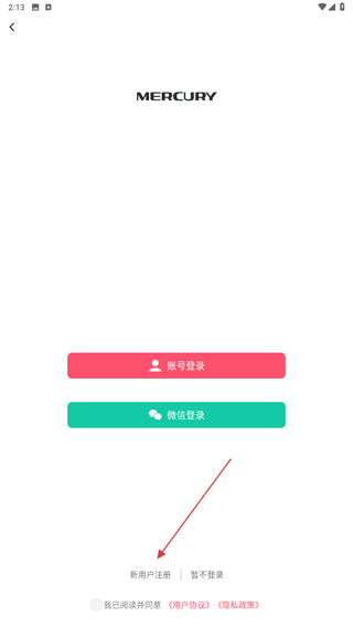 1、打开水星安防监控APP,在首页内点击登录的按钮。