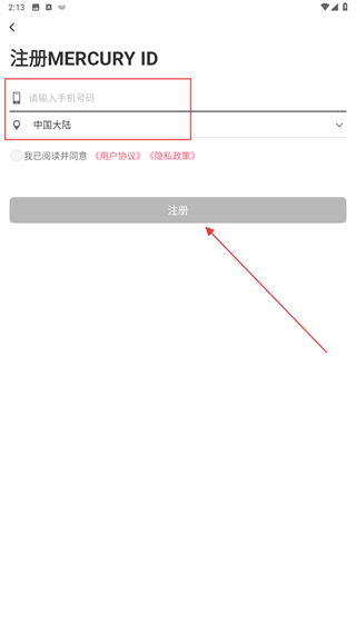 3、在该页面内,输入注册的手机号,再点击注册的按钮。