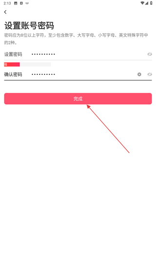 5、进入到最后一步,设置账号密码,再点击完成的按钮即可。