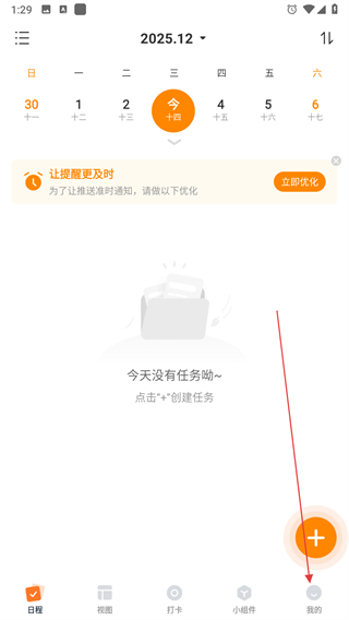 1、打开指尖时光应用,进入日程页面后,点击导航栏的我的。