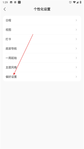 3、进入个性化设置页面后,点击偏好设置,进入偏好设置页面。