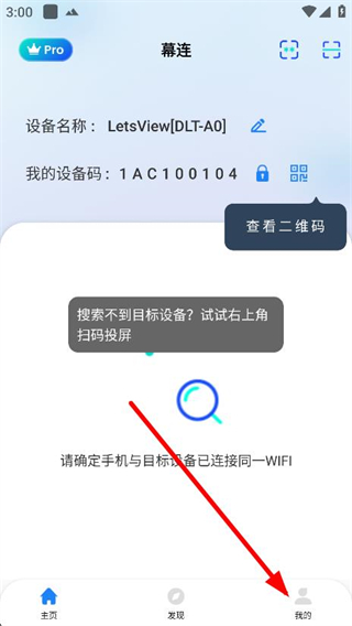 4. 若未能搜索到您的设备,可以点击右上角的扫码投屏和投屏码投屏方式进行连接