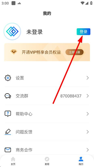 2、进入我的页面后,点击右上方的登录按钮。