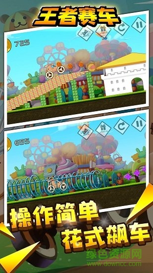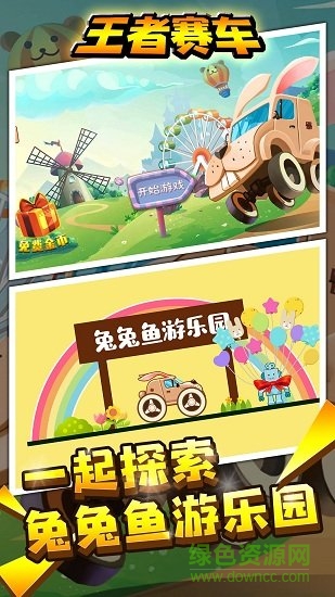 王者赛车游戏是一款区别于一般的赛车竞速游戏,王者赛车游戏采用卡通风格。在王者赛车游戏里,玩家既不用和别人飙车比赛,也不用赶时间到达终点。无论你是用技术型的飞天漂移,还是用各种搞笑奇葩走位;只要你能突破机器人的封锁到达终点就能,到达梦幻的天堂,来王者赛车吧,让我们一起回到梦开始的地方,兔兔鱼游乐园发车了。