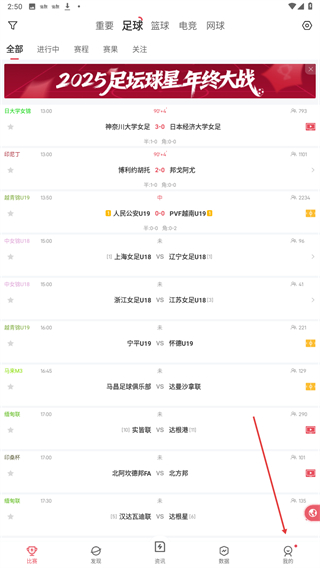 1、在顶部导航栏选择赛事类型,找到你想观看的比赛,点击目标比赛条目,进入直播页面。