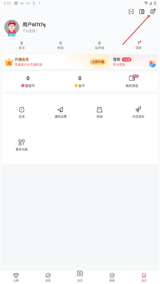 2、进入我的页面内,用户需点击右上角设置的功能按钮。