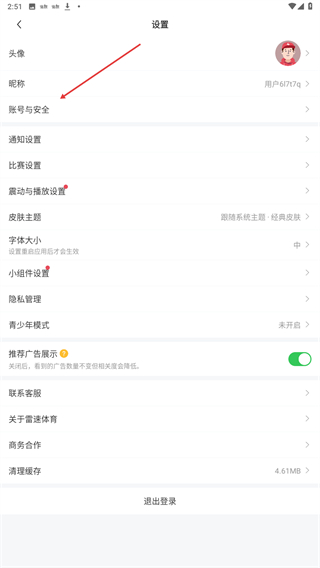 3、进入设置的页面内,点击账号与安全的功能按钮。