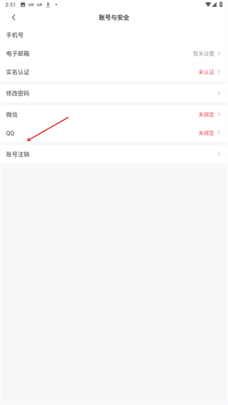 4、在账号与安全的页面内,点击账号注销的按钮即可。