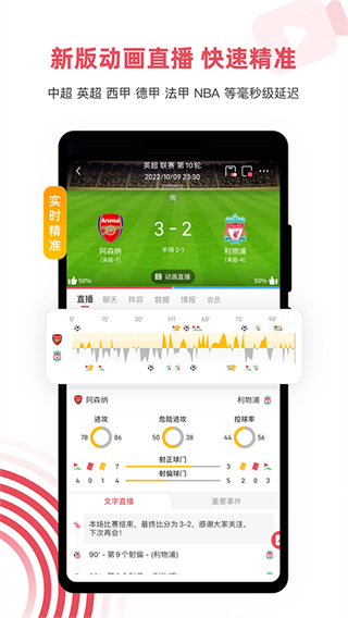 【动画直播】准确即时还原赛场战况的动画直播、快速精准的战报集锦,会在比分改写后及时告诉你所钟爱球队和关注比赛的比分,让你不错过每一场精彩比赛
