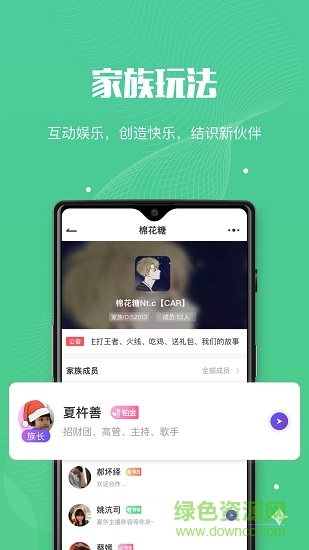 6.在这里,人人可以创建家族,群集你的小伙伴,在这里,人人都可以成为电台主播,倾诉你的心声,表达你的自我。一键认证,快速申请。