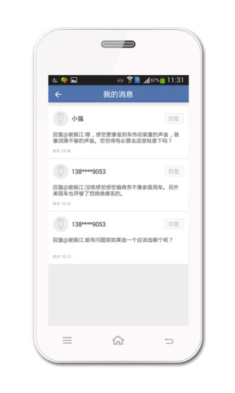 会养车技师服务端是针对汽修技师开发的一款应用工具,汽修技师可以通过登录服务端查看会养车平台前端车主的提问和预约服务信息,并可以在线回答车主提出的问题。