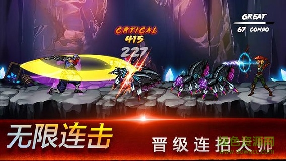 非凡的打击体验和连招系统 丢弃传统技能一键释放的模式,让简单招式可以通过组合键释放,让你打的更爽, 武器成长会解锁不同的招式,让你成为连招大师!