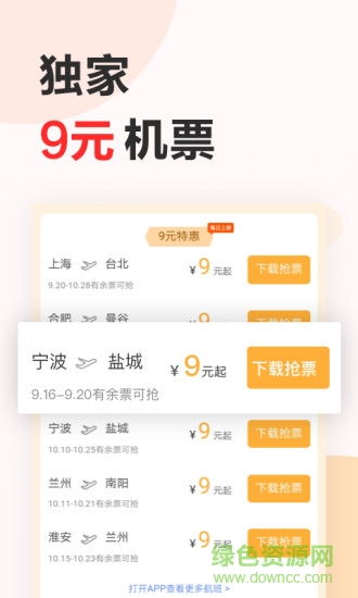 9元特价机票,超多航线,隔日上新