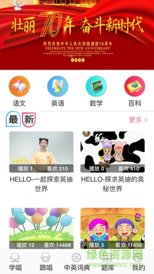 以唱歌、朗诵的形式学习英语的app,可以在英语唱玩的过程中能学习英语的单词、发音和简单的语法。该app应用包括了学唱、跟唱、测试、词典、排行榜等模块。