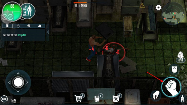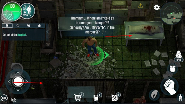 3、进入医院场景后,通过移动控制按钮操控角色,向目标区域移动探索。