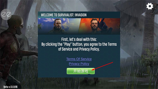 1、进入生存入侵游戏界面,找到开始游戏按钮并点击,进入存档加载页面。