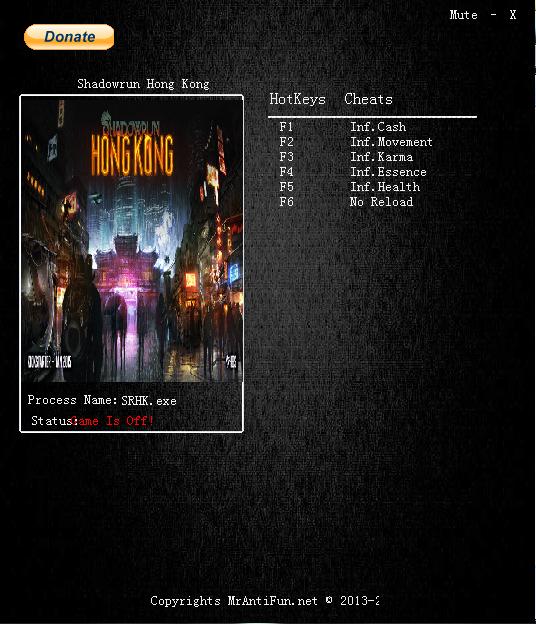暗影狂奔香港六项修改器是暗影狂奔系列香港的辅助工具,为玩家提供了无限Karma、无需装弹、无限金钱等6项功能,唯一不足的就是英文界面看着还是很蛋疼,不过大家参考修改器说明,使用起来还是得心应手吧。新手用户在游戏中遇到困难时使用蛮不错的,欢迎下载使用。