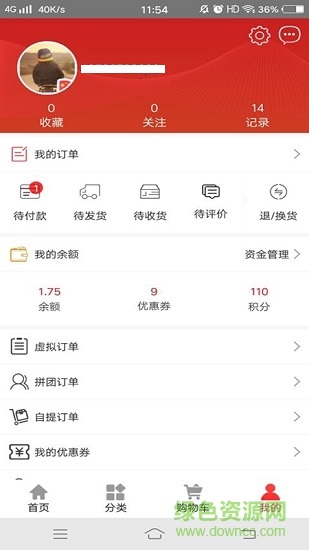 10.用户中心:点击进入个人信息管理界面,可以查看余额,购物车,物流及订单信息等。