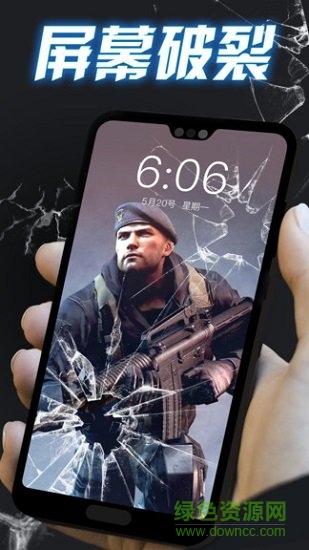 开启应用,设置碎屏特效。用手指触碰屏幕时听见”砰“的一声,屏幕玻璃”碎裂“了。