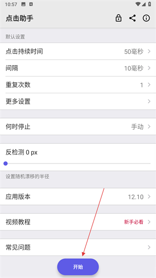 1、打开点击助手应用,点击底部开始按钮,启动点击助手功能。