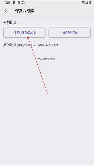 4、然后进入保存界面,点击保存当前动作按钮,将点击动作配置保存。